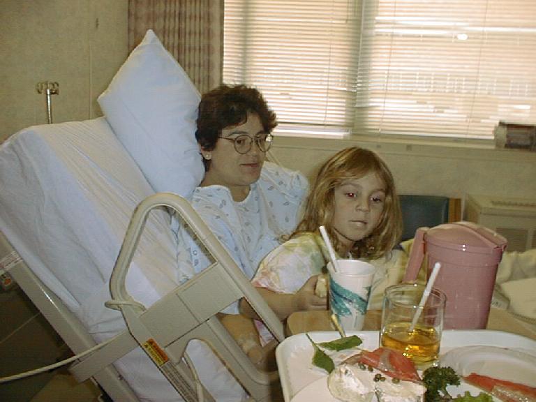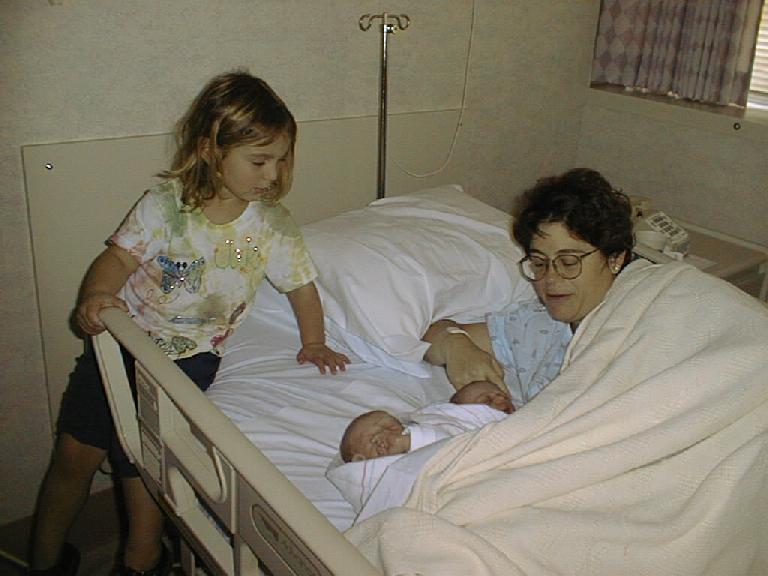 Charles went and picked up Kalinda and brought her to the hospital. She's looked at the babies, but doesn't want to do anything but pick at mommy's breakfast with her.