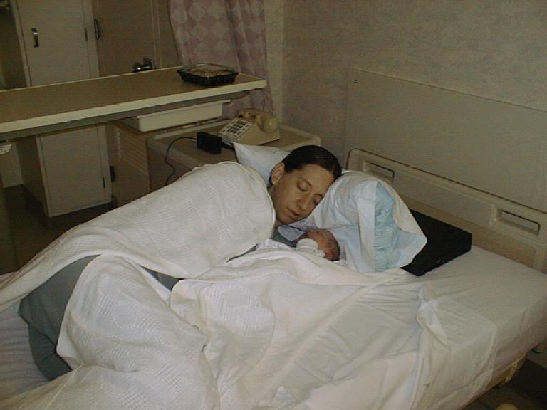 Another pic of Kimberly in heaven with two blissfully sleeping newborns!